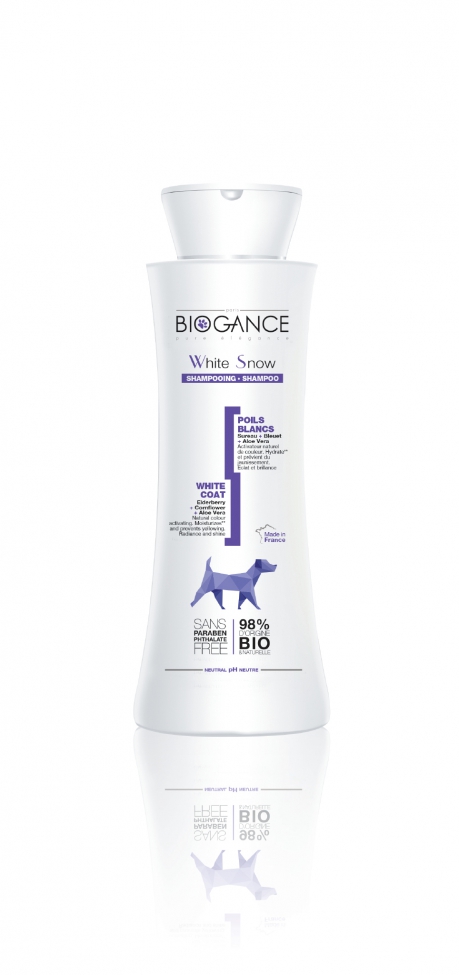 ホワイトスノーシャンプー[エルダーベリーエキス配合] エルダーベリーエキスの配合により被毛本来の自然な発色を整えるシャンプーです。 天然の配合成分が優しく汚れを洗い落とし、コンディションを整え、被毛本来の美しい 輝きを保ちます。 pHバランスのとれた低刺激配合により皮膚がデリケートなペットにも 安心してお使いいただけます。 特徴 : 柔らかく艶やかな仕上り。被毛の自然な発色を整え、もつれ・絡みを防ぎます。 被毛タイプ : ホワイトまたはライトカラーの被毛に最適です。子犬用としてもお使いいただけます。