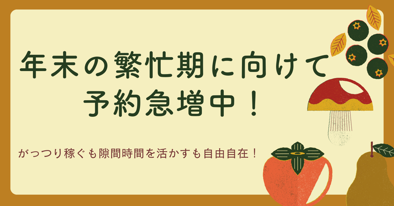 年末の繁忙期に向けて予約急増中!